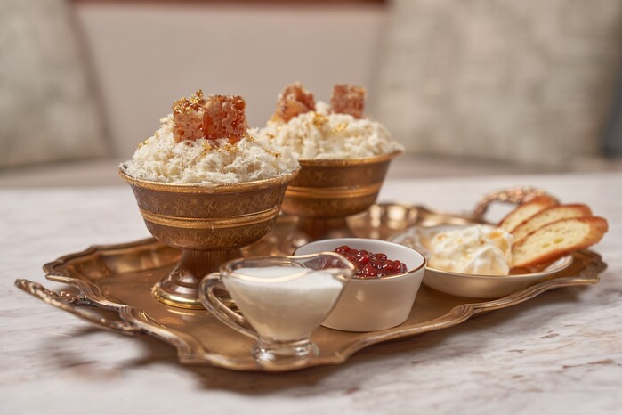 그의 디저트 철학은 재료 본연의 맛을 살리는 데 있습니다. 풀만 호텔의 카이막 크림 빙수는 헤리티지 커피콩 에스프레소를 섞어 특별함을 더했습니다.
