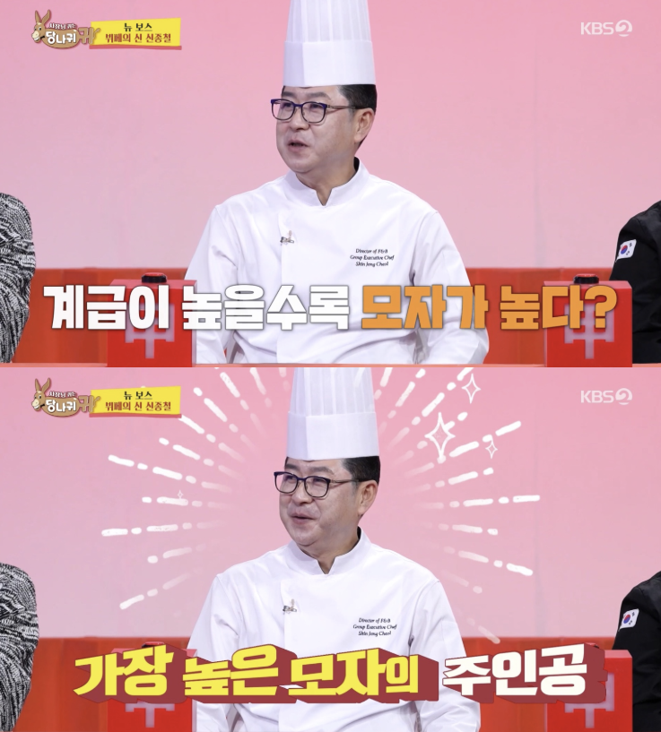 흥미로운 점은 셰프들의 모자 길이가 계급을 나타낸다는 사실입니다. 총주방장 모자는 32cm로 가장 높으며, 팀장과 과장급은 26cm, 일반 사원은 23cm입니다. 신종철 셰프는 자신의 키가 184cm라 모자를 더하면 2m 10cm에 달한다고 밝혀 웃음을 자아냈습니다.